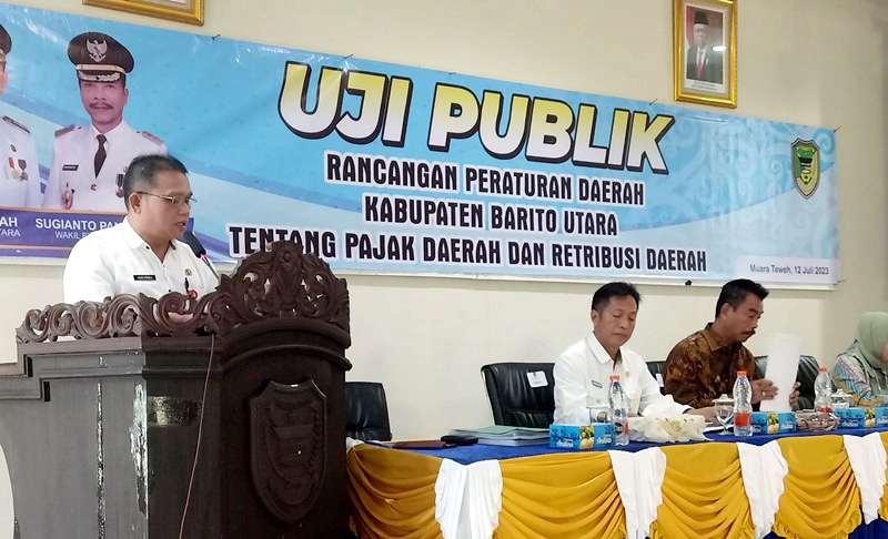 LINTASKABAR24, Muara Teweh – Badan Pengelola Pendapatan Daerah (BPPD) Kabupaten Barito Utara melaksanakan kegiatan uji publik Rancangan Peraturan Daerah (Raperda) tentang pajak daerah dan retribusi daerah, di aula BappedaLitbang Muara Teweh, Rabu 12 Juli 2023.