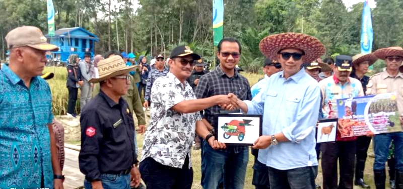 Lintaskabar24, Muara Teweh – Pada panen bersama padi sawah sawah varietas intani di lahan Kelompok Tani (Poktan) Mitra Laba, Desa Paring Lahung, Kecamatan Montallat, Kamis 19 Januari 2023, Bupati Barito Utara, H Nadalsyah menyerahkan beberapa unit Alat Mesin Pertanian (Alsintan) kepada Poktan di enam Kecamatan di se Barito Utara.