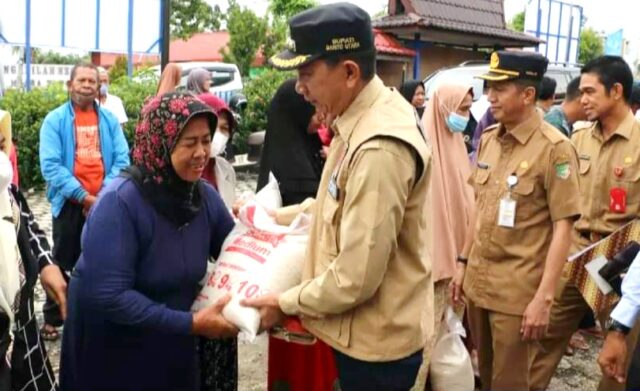 LINTASKABAR24, Muara Teweh – Bupati Barito Utara, H Nadalsyah didampingi Sekretaris Daerah (Sekda), Drs Muhlis dan beberapa kepala perangkat daerah serta Camat Teweh Tengah Jati Prayogo menyerahkan bantuan kepada warga terdampak banjir yang terjadi di wilayah Kabupaten Barito Utara, Senin 3 April 2023.
