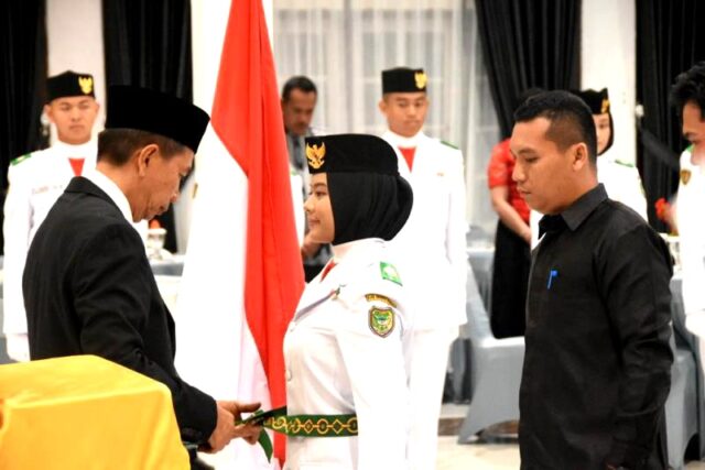 LINTASKABAR24, Muara Teweh – Pasukan Pengibar Bendera Pusaka (Paskibraka) Kabupaten Barito Utara yang akan bertugas pada Upacara Peringatan HUT ke 78 RI secara resmi dikukuhkan oleh Bupati Barito Utara di gedung Balai Antang Muara Teweh, Rabu malam 16 Agustus 2023.