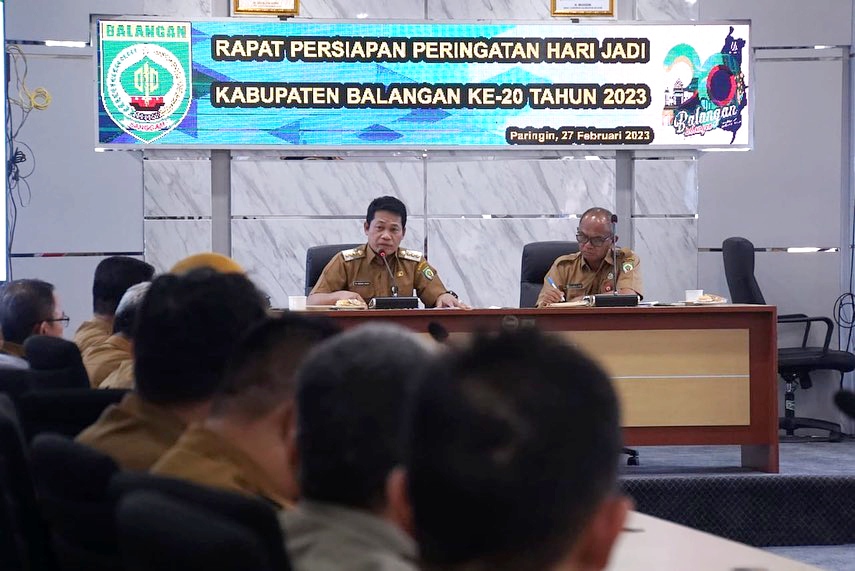 LINTASKABAR24, Balangan – Bupati Balangan, H Abdul Hadi memimpin langsung rapat persiapan peringatan Hari Jadi Kabupaten Balangan ke 20 di aula Benteng Tindakan, Senin 27 Februari 2023.