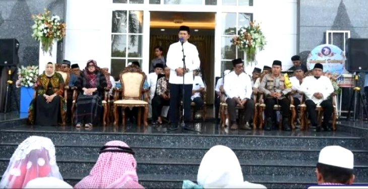 Suasana haru mewarnai wajah-wajah warga masyarakat yang memadati halaman Rumah Jabatan Bupati, untuk menyambut keluarga yang baru saja menunaikan rukun islam yang kelima.