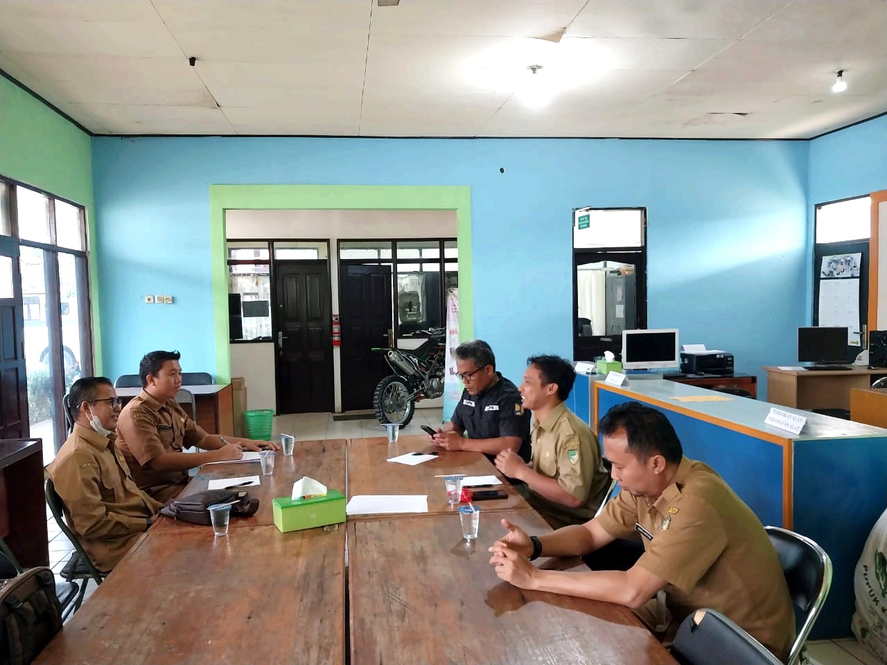 Ket foto : Kepala Dinas PUPR Barito Utara beserta jajaran saat bersama Kepala SMKN 1 Bukit Sawit di salah satu ruang Dinas PUPR.(foto: Theo)