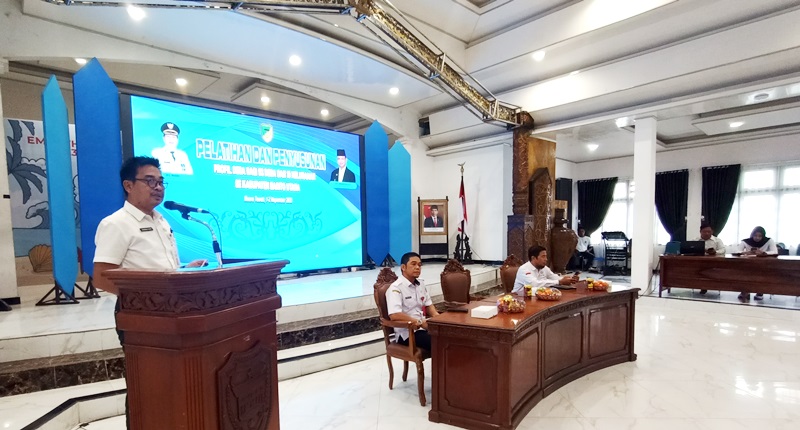 Ket foto : Asisten bidang Pemerintahan dan Kesejahteraan Rakyat Sekda Barito Utara, Eveready Noor saat membuka kegiatan pelatihan profil desa dan kelurahan se Barito Utara di gedung Balai Antang, Rabu 1 November 2023.(foto: Theo)
