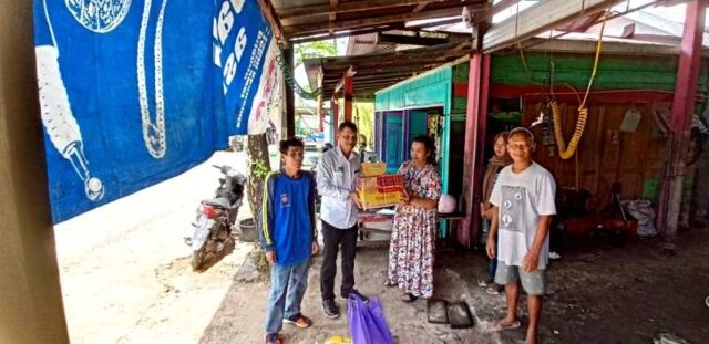 Bantuan yang disampaikan kepada 11 kepala keluarga (KK) berupa sembako yang terdiri dari 5 kg beras, 1 kg gula pasir, 1 liter minyak ikan dan 1 dus mie instan.