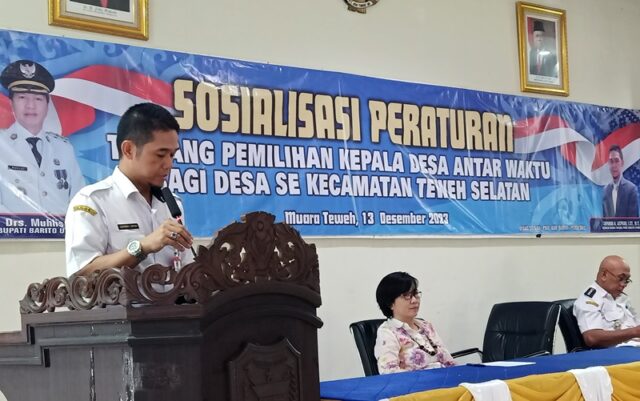 LINTASKABAR24, Muara Teweh – Dinas Sosial dan Pemberdayaan Masyarakat Desa (Dinsos PMD) Kabupaten Barito Utara, melaksanakan kegiatan sosialisasi Peraturan tentang Pemilihan Kepala Desa Antar Waktu Bagi Desa se Kecamatan Teweh Selatan tahun 2023, di aula BappedaLitbang, Rabu 13 Desember 2023.