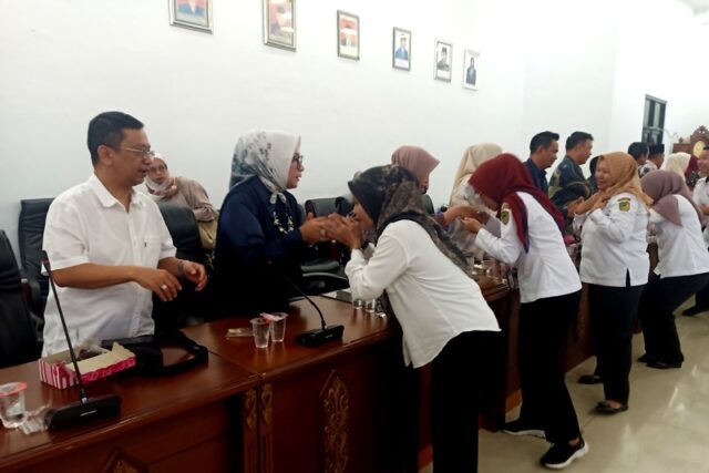 LINTASKABAR24, Muara Teweh – DPRD Kabupaten Barito Utara menggelar acara Halal Bi Halal yang dihadiri oleh Ketua DPRD Barito Utara, Hj Mery Rukaini, Wakil Ketua II DPRD Hj Henny Rosgiaty Rusli, anggota DPRD, Plt Sekretaris Dewan (Sekwan) Sudiono, serta mantan Sekwan Barito Utara, Edwin Tuah, yang baru saja memasuki masa purna tugas pada awal Maret lalu, Rabu 9 April 2025.