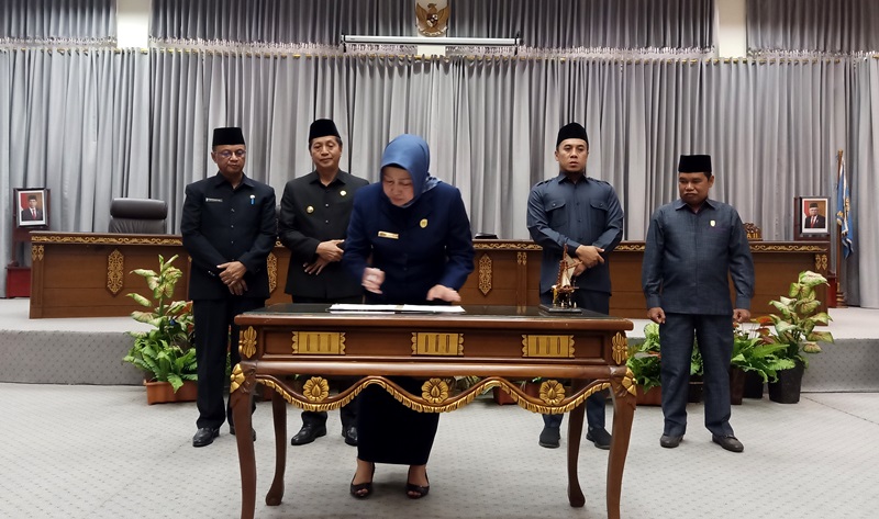 “Mengingat bahwa rancangan berita acara persetujuan bersama kepala daerah dan DPRD Barito Utara terhadap rancangan tentang APBD tahun anggaran 2024 dan raperda pajak daerah dan retribusi daerah telah kita setujui, rapat kita lanjutkan dengan penandatanganan berita acara persetujuan bersama sekaligus penyerahan pendapat akhir fraksi dari ketua DPRD kepada Pj Bupati dan pidato bupati bupati diserahkan kepada Ketua DPRD,” kata Hj Mery Rukaini.