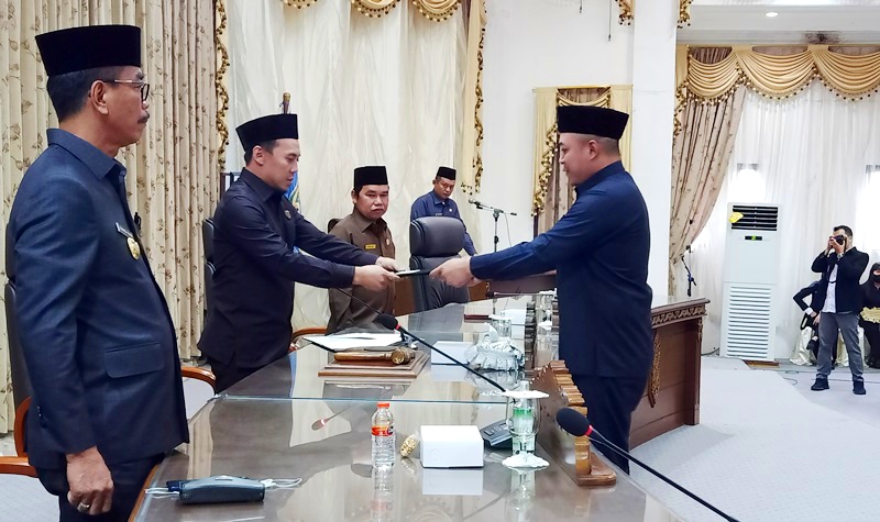 Pada kesempatan tersebut, Fraksi Partai Demokrat menyerahkan pendapat akhir fraksi kepada pimpinan rapat, yang dipimpin Wakil Ketua I DPRD Parmana Setiawan, didampingi Wakil Ketua II DPRD Sastra Jaya dan disaksikan Wakil Bupati Sugianto Panala Putra, Sekda Muhlis, unsur FKPD dan undangan lainnya.