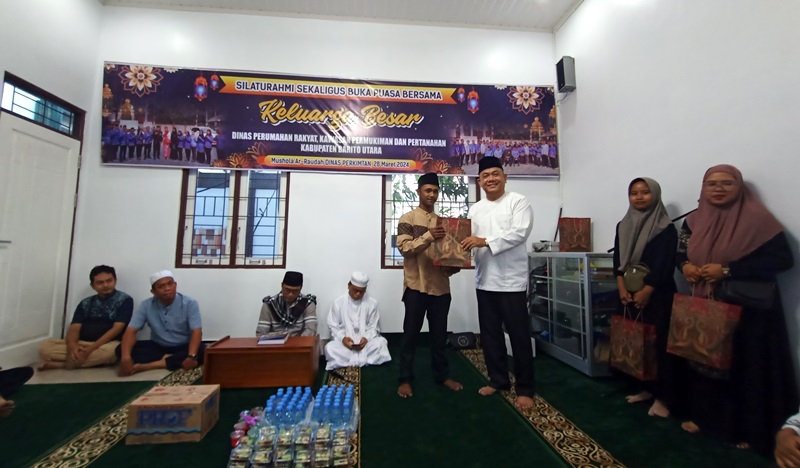 LINTASKABAR24, Muara Teweh – Dalam rangka mempererat jalinan tali silaturahmi keluarga besar Dinas Perumahan Rakyat, Kawasan Pemukiman dan Pertanahan Kabupaten Barito Utara (Perkimtan Barut) melaksanakan buka puasa bersama di Mushola Ar Raudhah Dinas Perkimtan setempat, Kamis 28 Maret 2024.
