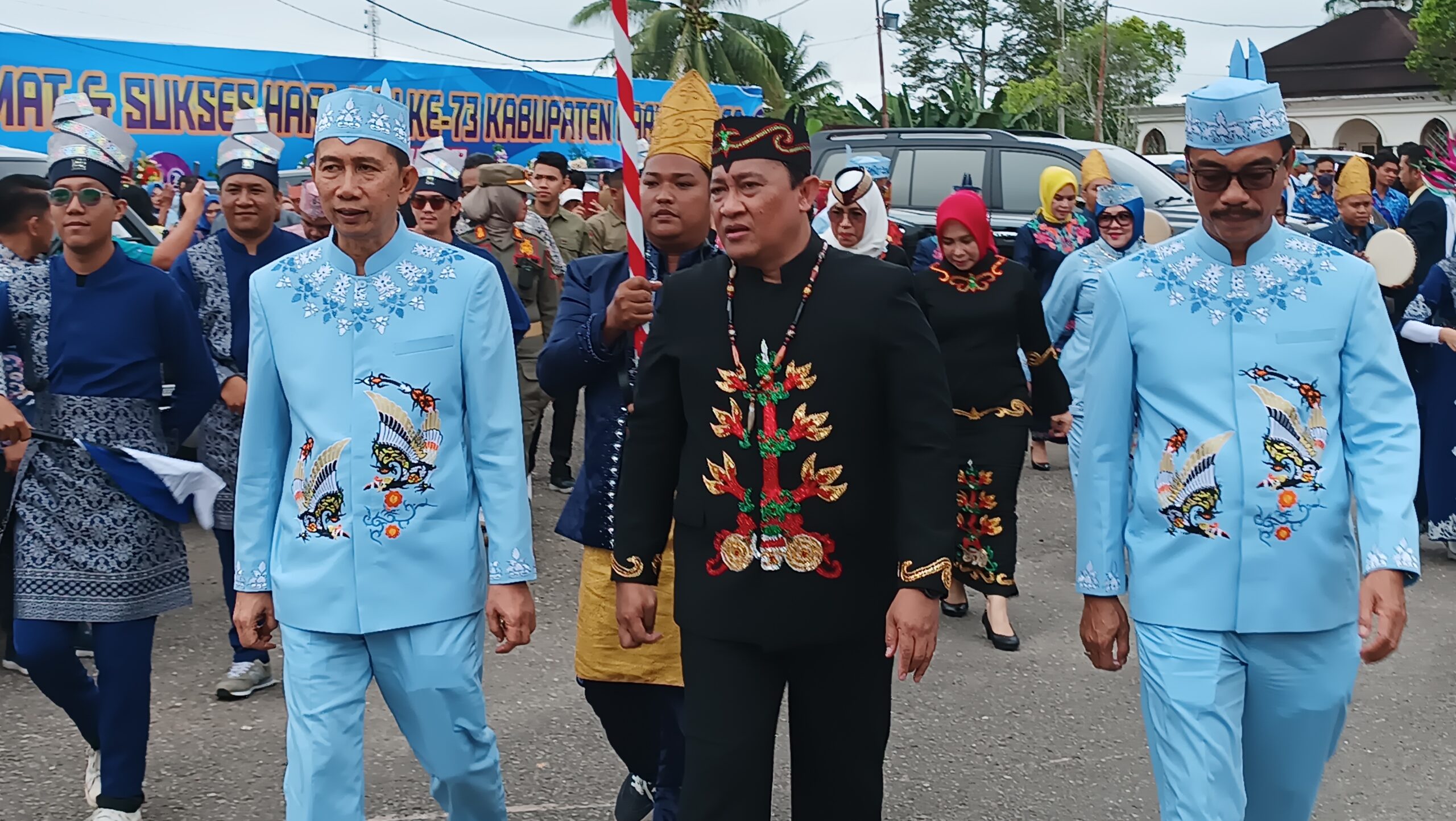 “Hal ini guna mewujudkan Kalimantan Tengah Makin BERKAH (Bermartabat, Elok, Religius, Kuat, Amanah dan Harmonis),” ungkap Wagub Kalteng H Edy Pratowo membacakan sambutan Gubernur Kalteng pada upacara peringatan Hari Jadi ke 73 Kabupaten Barito Utara di arena terbuka Tiara Batara Muara Teweh, Senin 17 Juli 2023.