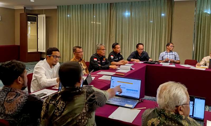 Pemkab Barito Utara yang diwakili Pj Sekda dan Kadis PUPR serta Kabid Bina Marga saat mengikuti sidang Pleno Rekomendasi Persetujuan Desain Jembatan Rangka Baja Lemo di Kecamatan Teweh Tengah, di Hotel Aston Tropicana, Bandung, Senin 24 Maret 2025 lalu.(foto: Theo)