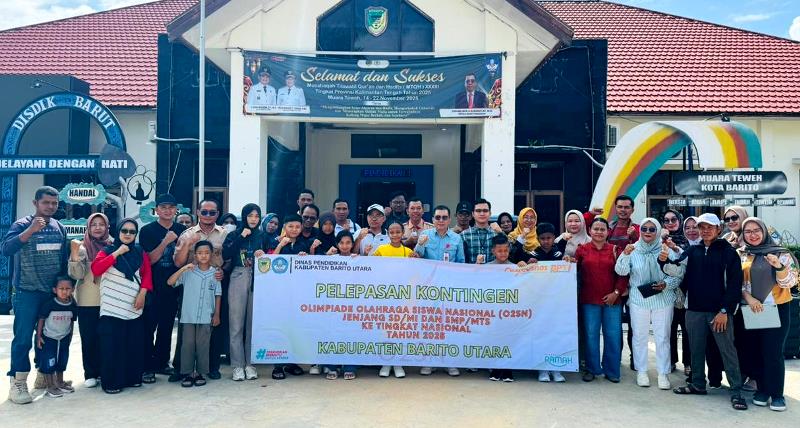 LINTASKABAR24, Muara Teweh – Dinas Pendidikan Kabupaten Barito Utara menggelar acara pelepasan Kontingen Olimpiade Olahraga Siswa Nasional (O2SN) yang akan berlaga di tingkat nasional di Kota Depok, Provinsi Jawa Barat, pada 9–14 November 2025.