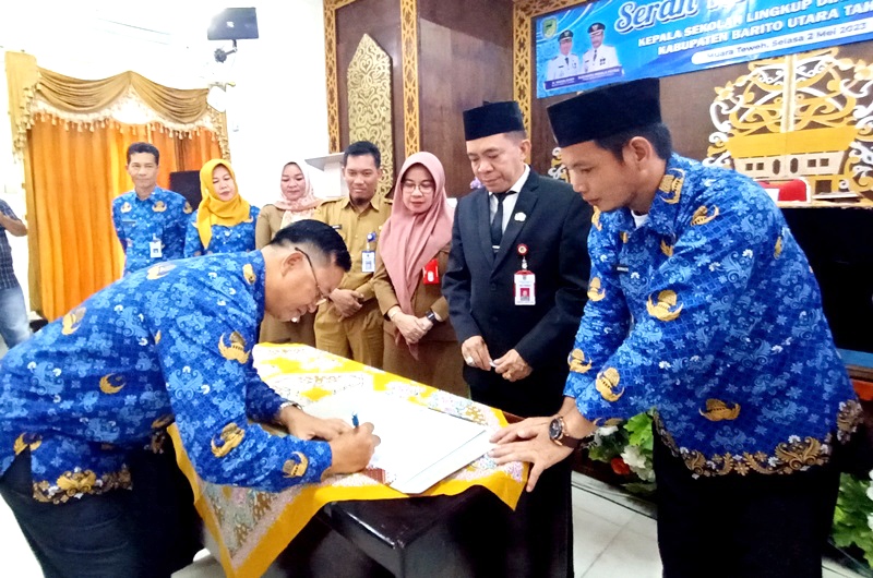 LINTASKABAR24, Muara Teweh – Menindaklanjuti pelantikan kepala sekolah dan pengawas oleh Bupati Barito Utara H Nadalsyah yang dilaksanakan pada Jumat 3 April 2023 lalu, Dinas Pendidikan Kabupaten Barito Utara melaksanakan serah terima jabatan (Sertijab) kepala sekolah (Kepsek) dan guru, di aula Disdik setempat, Selasa 2 Mei 2023.