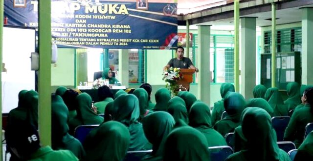 LINTASKABAR24, Muara Teweh – Kodim 1013 Muara Teweh melaksanakan sosialisasi tentang netralitas Persit KCK Cabang XXXIX yang tidak mencalonkan dalam Pemilu 2024. Kegiatan tersebut dilaksanakan di aula Makodim 1013 Muara Teweh, Jumat 2 Februari 2024.