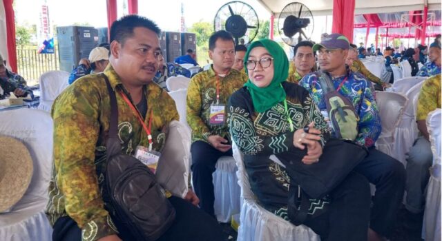 LINTASKABAR24, Balangan – Ketua komisi II DPRD Kabupaten Balangan, Nur Fariani mengunjungi dan berbincang dengan para peserta seusai pembukaan Pekan Nasional (Penas) Petani Nelayan XVI di Kota Padang, Sumatera Barat, Sabtu 10 Juni 2023.