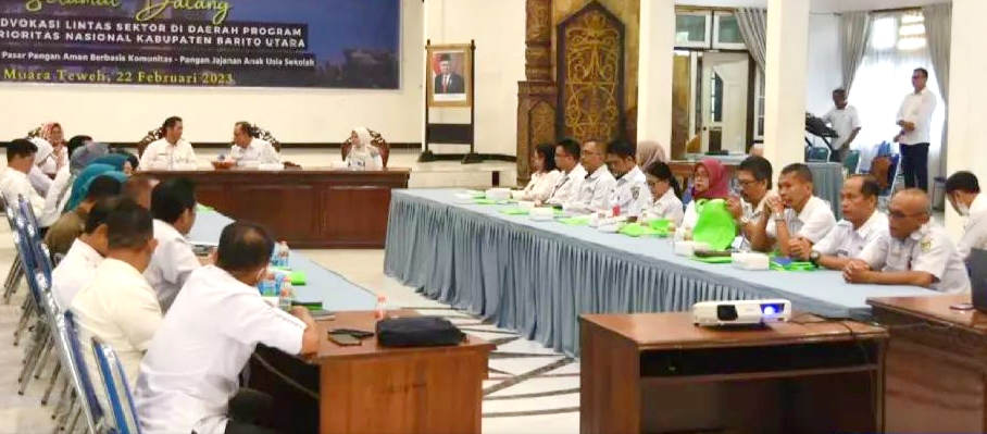 LINTASKABAR24, Muara Teweh – Sekretaris Daerah Barito Utara, Drs Muhlis membuka acara advokasi pemerintah daerah dan lintas sektor dalam rangka Implementasi 3 (tiga) program nasional terpadu (pangan jajanan anak usia sekolah, desa pangan aman dan pasar aman berbasis komunitas), di gedung Balai Antang, Rabu, 22 Februari 2023.