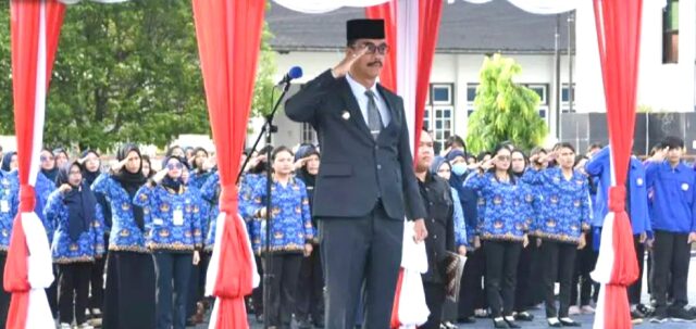 “Mari kita berkomitmen untuk bersama-sama menguatkan jati diri dan karakter bangsa, sikap dan perilaku patriotik, cinta tanah air, serta menjaga toleransi dan kerukunan dalam kehidupan bermasyarakat, berbangsa dan bernegara,” kata Wabup membacakan sambutan tertulis Presiden RI.