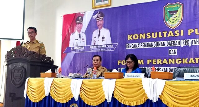 “Kabupaten Barito Utara merupakan satu dari sejumlah daerah yang masa jabatan kepala daerah berakhir di tahun 2023, sehingga perlu mempersiapkan dokumen rencana pembangunan daerah (RPD) yang nantinya menjadi salah satu acuan dalam penyusunan RKPD dan renstra perangkat daerah,” kata Sugianto Panala Putra, Senin 30 Januari 2023 pada kegiatan konsultasi publik penyusunan RPD Kabupaten Barito Utara tahun 2024-2026, di aula BappedaLitbang, Senin 30 Januari 2023.