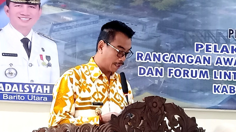Ket foto : Wakil Bupati Barito Utara, Sugianto Panala Putra saat menyampaikan arahan pada forum konsultasi publik di aula Bappeda Litbang, Kamis 9 Maret 2023.(foto: Theo)