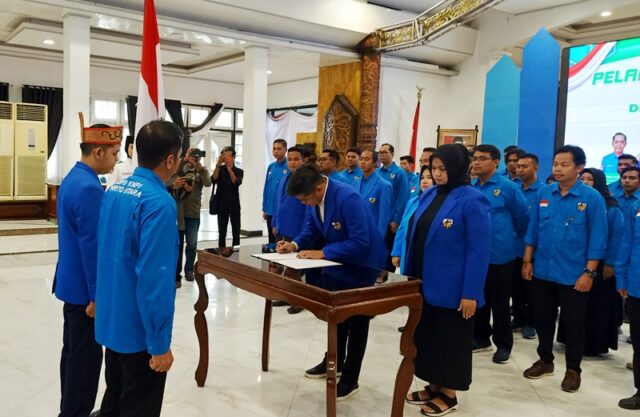 LINTASKABAR24, Muara Teweh – Pj Bupati Barito Utara , Drs Muhlis hadiri pelantikan pengurus Dewan Pengurus Daerah (DPD) Komite Nasional Pemuda Indonesia (KNPI) Kabupaten Barito Utara periode 2023-2026, di Gedung Balai Antang Muara Teweh, Kamis 7 Desember 2023.