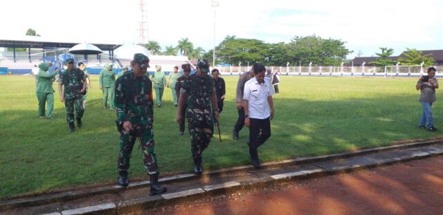 LINTASKABAR24, Muara Teweh – Penjabat Bupati Barito Utara, Drs Muhlis beserta jajaran menyambut dan mendampingi Kunjungan Kerja Komandan Korem 102/Panju Panjung Brigjen TNI Iwan Rosandriyanto yang sekaligus menutup rangkaian TMMD ke 119 tahun 2024 di Kabupaten Barito Utara, Rabu 20 Maret 2024.