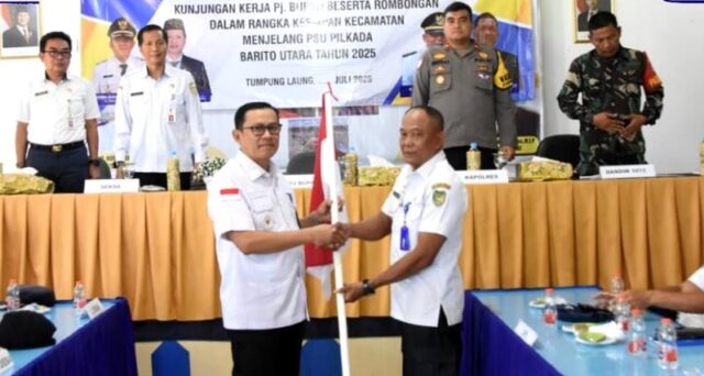 LINTASKABAR24, Muara Teweh – Penjabat (Pj) Bupati Barito Utara, Indra Gunawan, bersama Sekretaris Daerah Drs Muhlis, jajaran unsur FKPD dan sejumlah kepala perangkat daerah melakukan kunjungan kerja ke Kecamatan Gunung Timang dan Kecamatan Montallat.