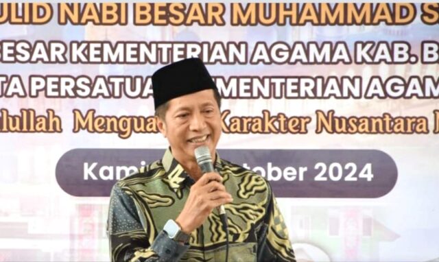 LINTASKABAR24, Muara Teweh – Pj Bupati Barito Utara, Drs Muhlis didampingi Unsur Forum Koordinasi Pimpinan Daerah (FKPD) menghadiri peringatan maulid Nabi Muhammad SAW 1446 Hijriah 2024 Masehi di halaman kantor Kementerian Agama Kabupaten Barito Utara, Kamis 3 Oktober 2024.
