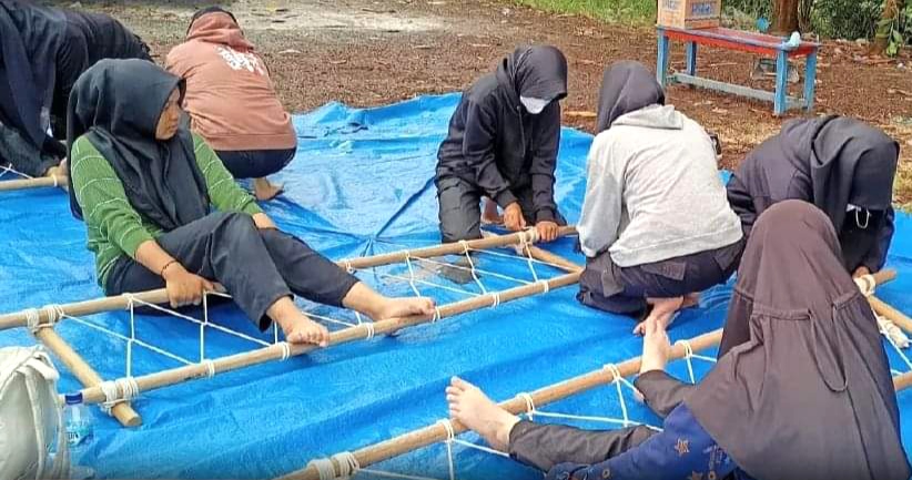 Pelatihan meliputi pemasangan tenda darurat, pembuatan tandu darurat, peningkatan keterampilan terutama dalam kemampuan pertolongan pertama evakuasi korban saat terjadi musibah di lapangan.