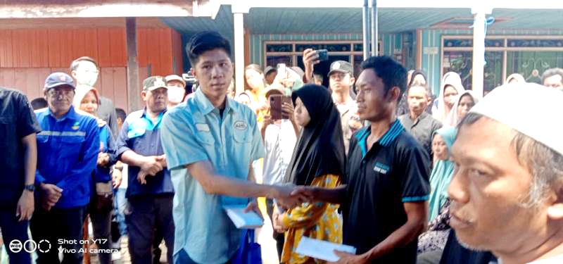 Agi panggilan akrab Komisaris PT Mitra Barito menyerahkan bantuan berupa uang tunai kepada 4 kepala keluarga (KK) yang rumahnya mengalami kebakaran.