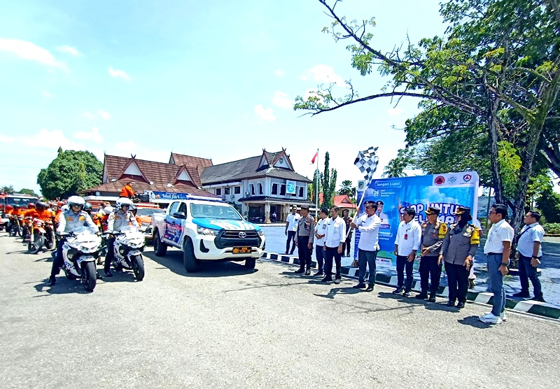 LINTASKABAR24, Muara Teweh – Wakil Bupati Barito Utara, Sugianto Panala Putra didampingi Kepala pelaksana BPBD, Wakapolres Barito Utara, beserta jajaran melepas tim Patroli Kesiapsiagaan Bencana Kabupaten Barito Utara yang dilaksanakan di halaman kantor Bupati Muara Teweh, Rabu 26 April 2023.