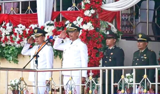 LINTASKABAR24, Muara Teweh – Wakil Bupati Barito Utara, Sugianto Panala Putra memimpin upacara penurunan bendera merah putih kali ini, Kamis 17 Agustus 2023. Setelah pada pagi harinya pada upacara pengibaran bendera dipimpin oleh Bupati Barito Utara H Nadalsyah selaku inspektur upacara.