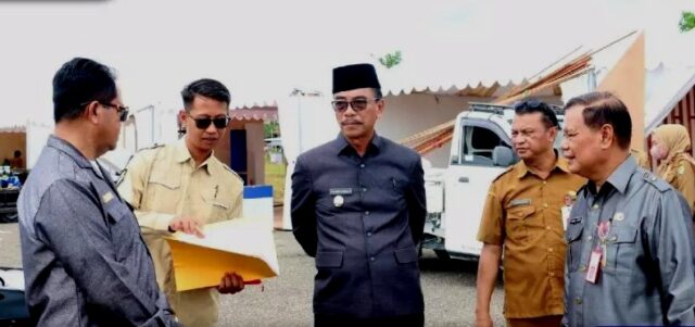 LINTASKABAR24, Muara Teweh – Wakil Bupati Barito Utara, Sugianto Panala Putra beserta seluruh jajaran Pemerintah Kabupaten setempat melakukan peninjauan dan pengecekan progres persiapan event Batara Expo 2023 yang direncanakan digelar di eks Bandara Beringin Muara Teweh, Senin 7 Agustus 2023.